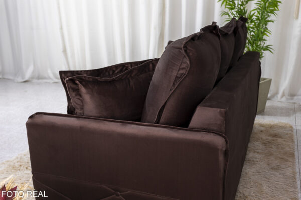 Sofá 3 lugares Vican Larg. 2.00m Veludo Marrom 5004 Molas Bonnel