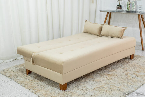 Sofá 4 lugares e Sofá Cama Casal Arpoador Veludo Bege 3040/04