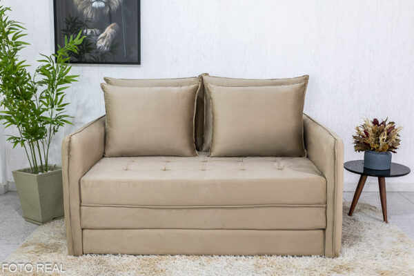Sofá Cama Noronha larg. 1.57m Veludo Bege 563