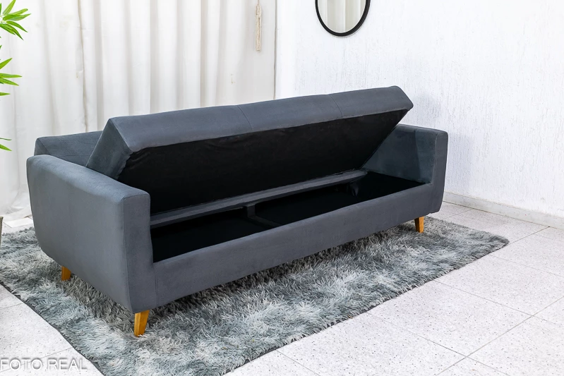 Sofá Cama Pâmela Larg. 2.00m Veludo Grafite 425
