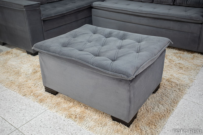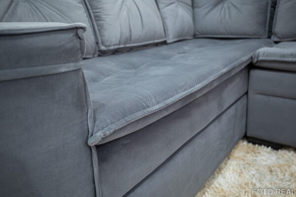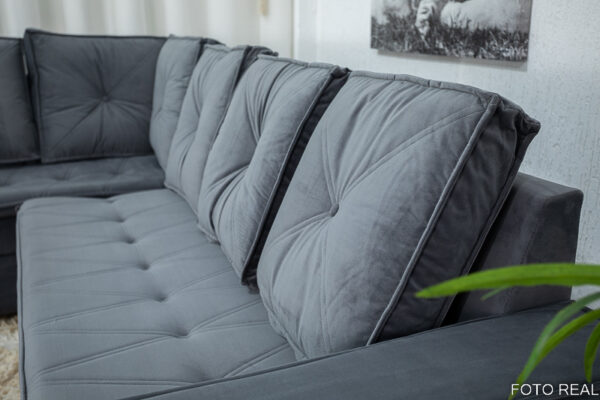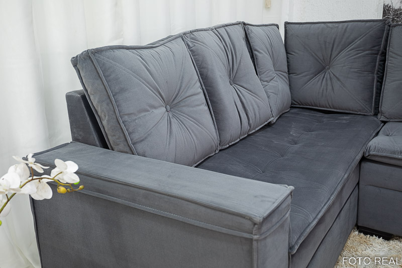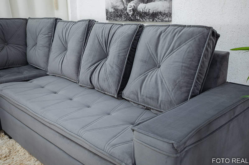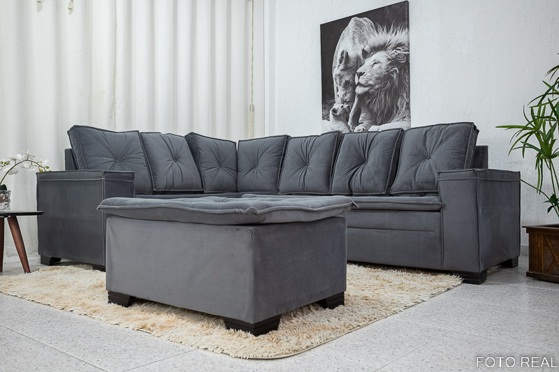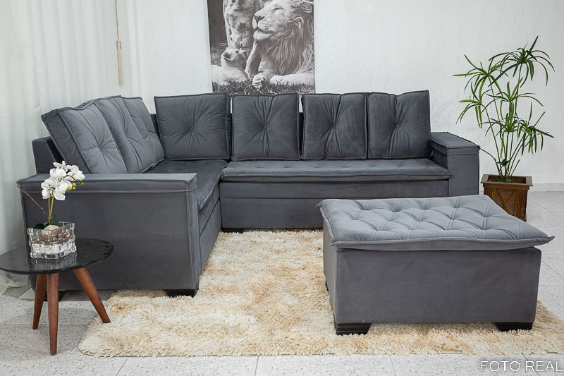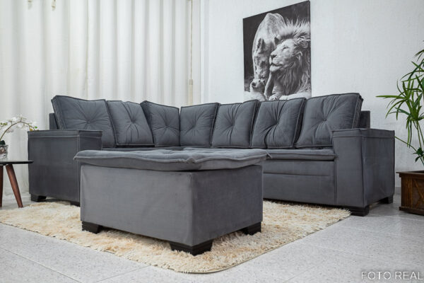 Sofá Canto 5 lugares com Puff Alemanha Veludo Grafite A15