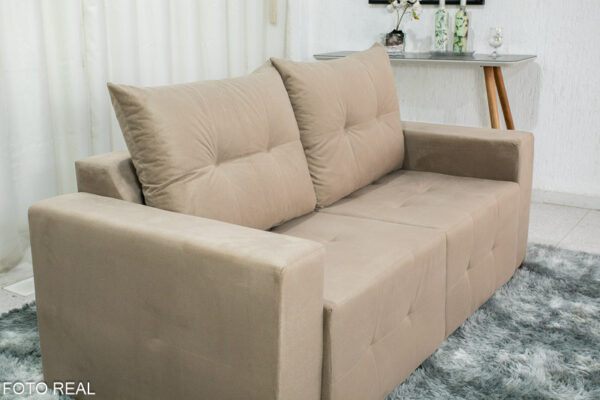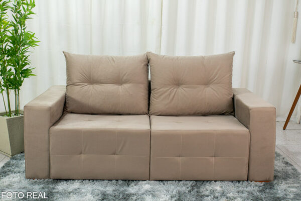 Sofá Retrátil 3 Lugares Havaí Larg. 1.80m Veludinho Bege 10