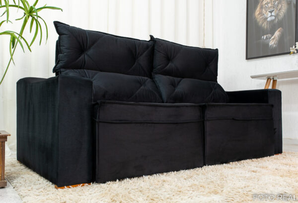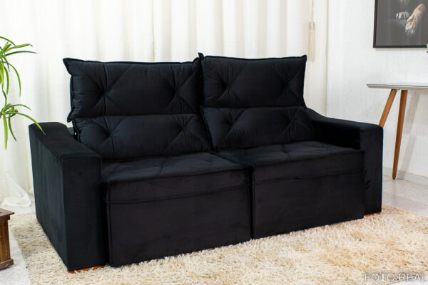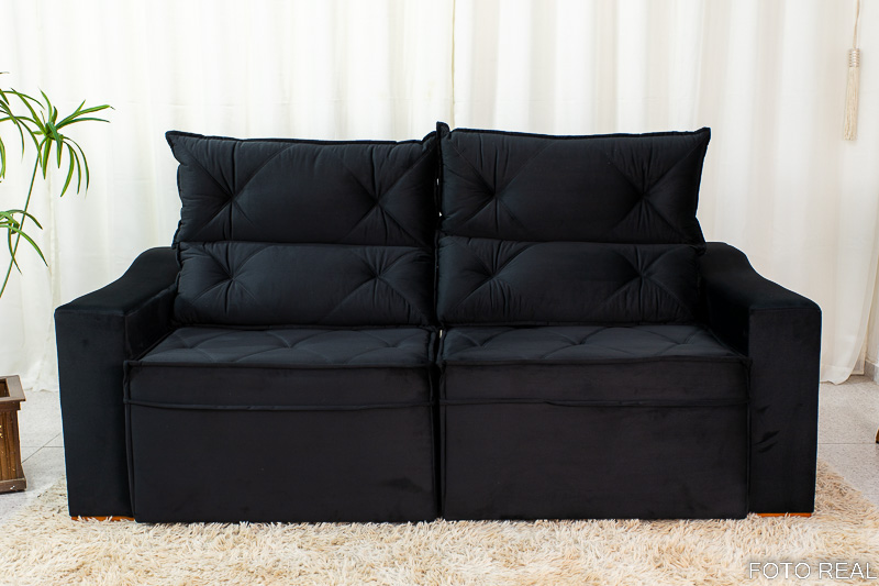Sofá Retrátil e Reclinável 3 Lugares Moscou 2.00m Veludo Preto A14