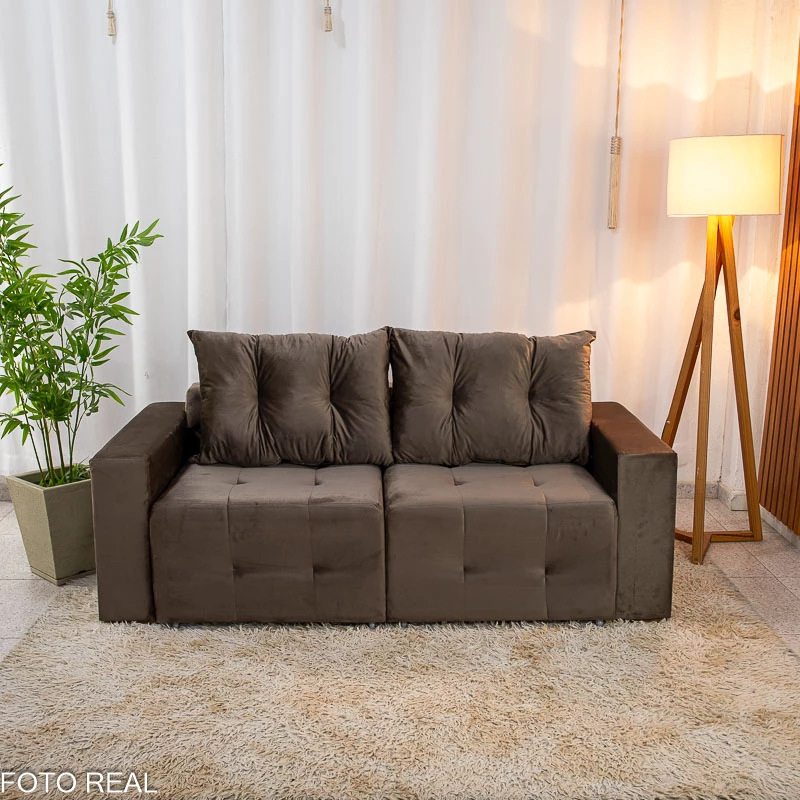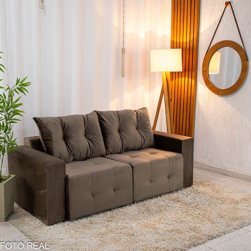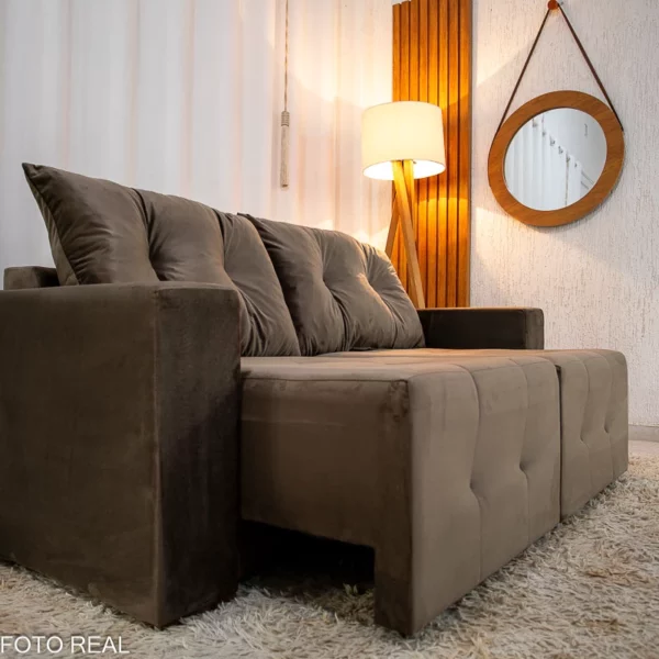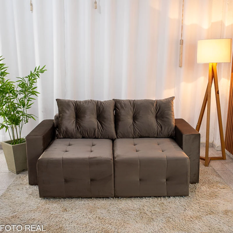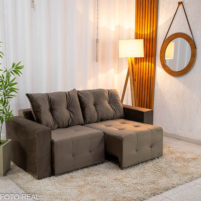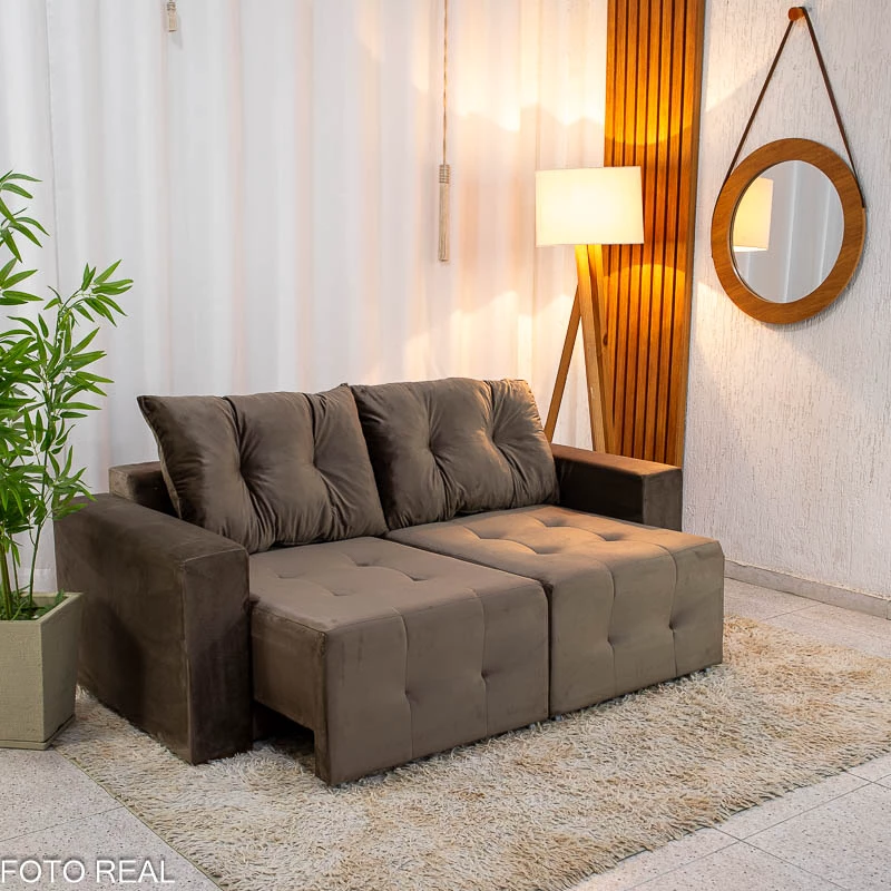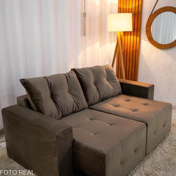 Sofá Retrátil Havaí 1.80m Veludo Marrom – Sem Caixa