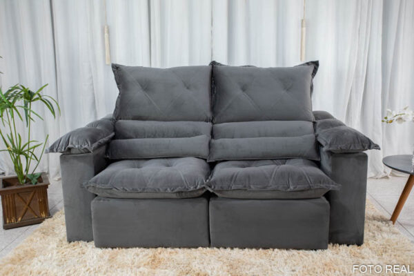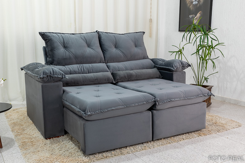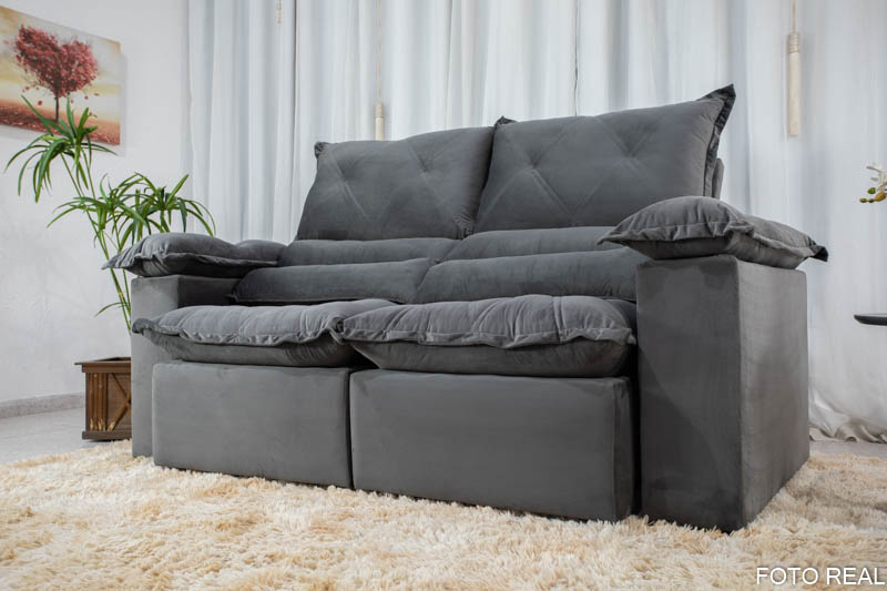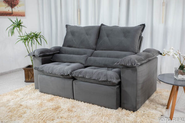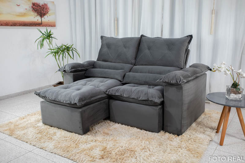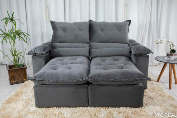 Sofá Retrátil Reclinável 1.80m Santorine Veludo Cinza