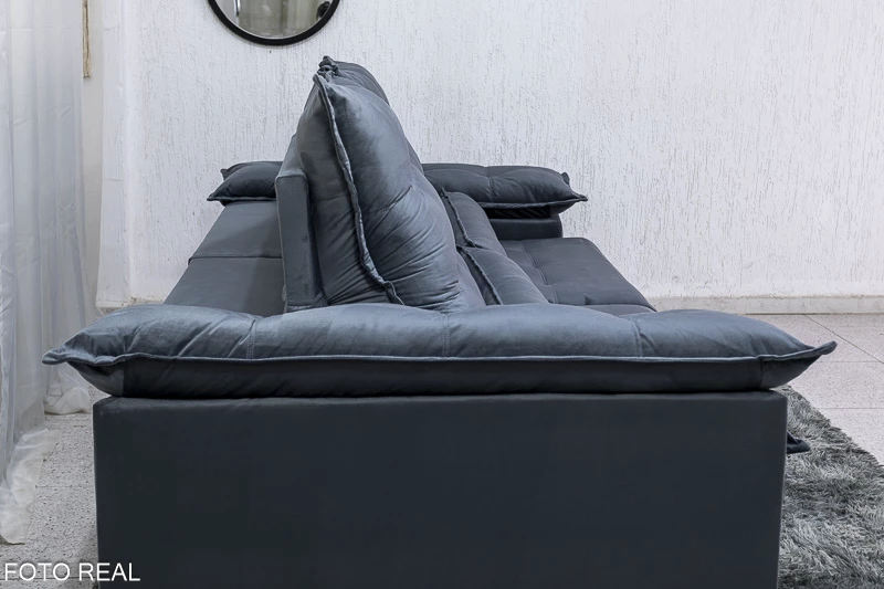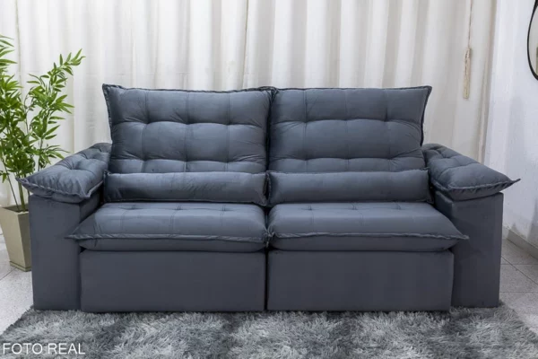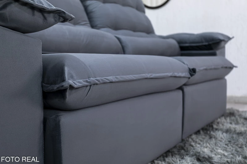 Sofá Retrátil Reclinável 2.00m Emanuelly Veludo Cinza 20 – D28 Soft