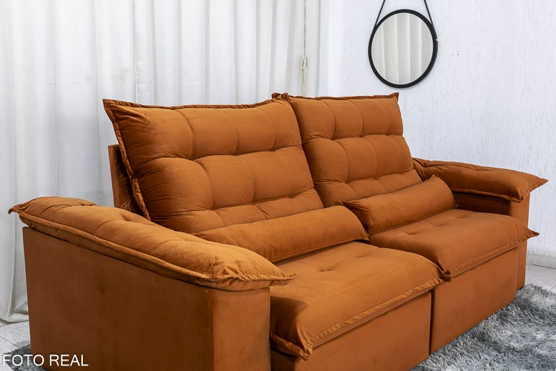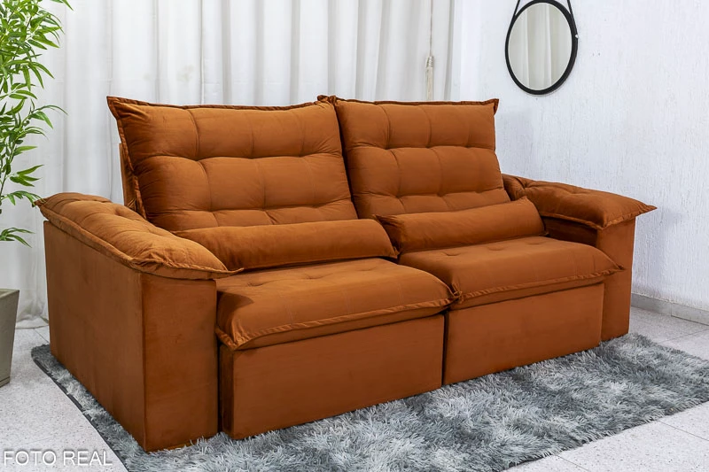 Sofá Retrátil Reclinável 2.00m Emanuelly Veludo Terracota – D28 Soft