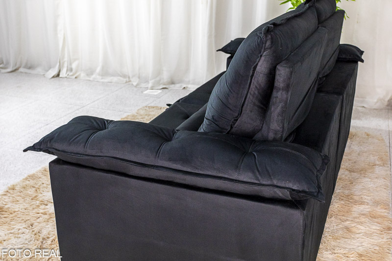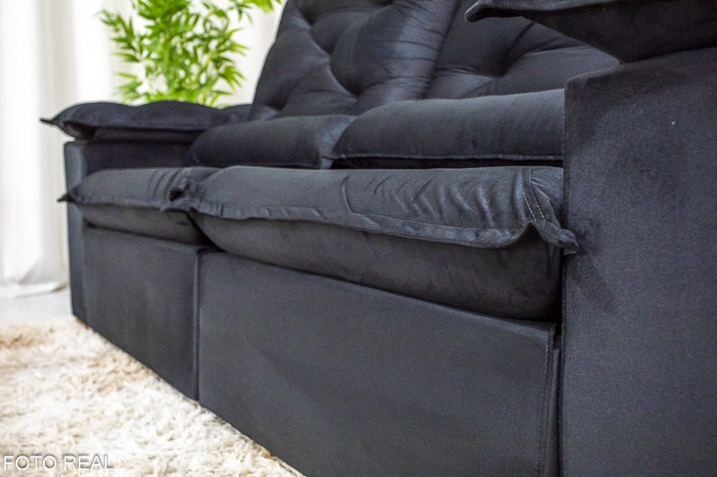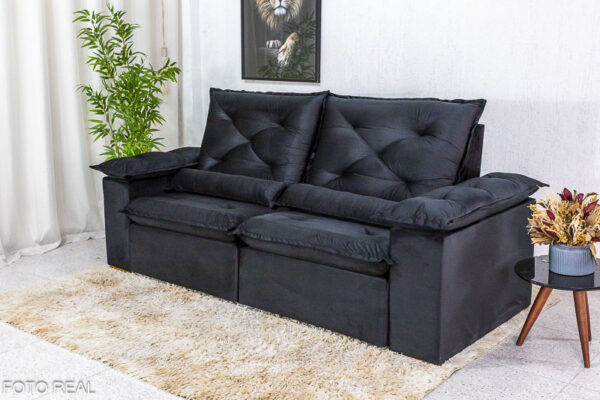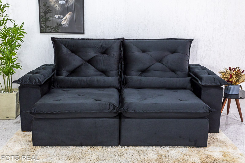 Sofá Retrátil Reclinável 2.00m Roma Veludo Preto 21 – D28 Soft