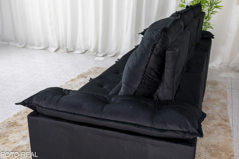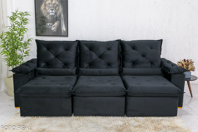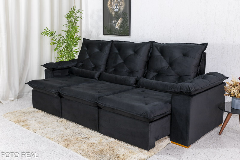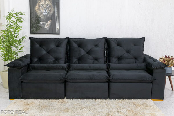 Sofá Retrátil Reclinável 2.70m Roma Veludo Preto 21 – D28 Soft