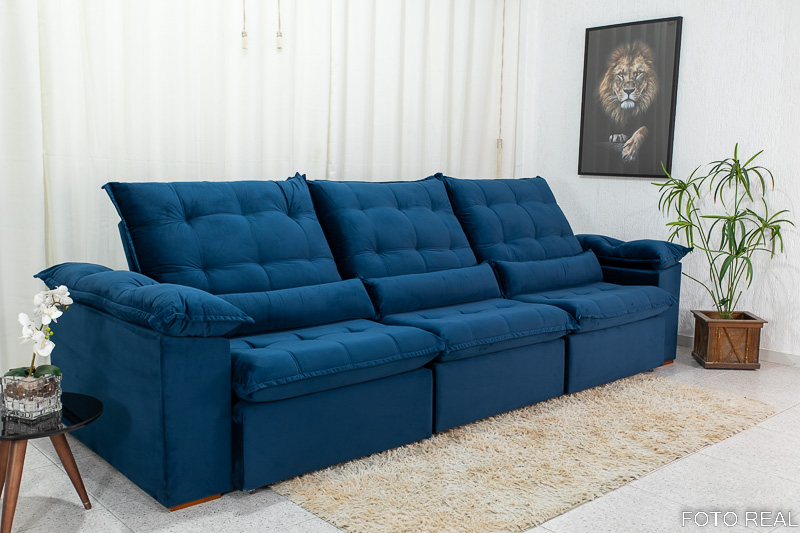 Sofá Retrátil Reclinável 3.20m Emanuelly Veludo Azul 03 – D28 Soft