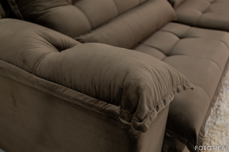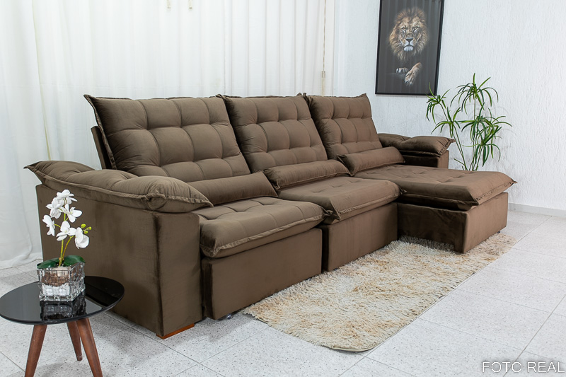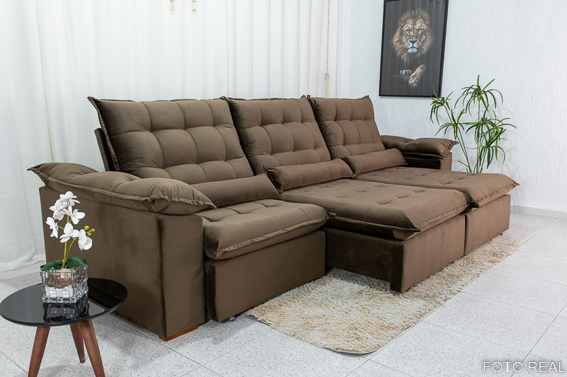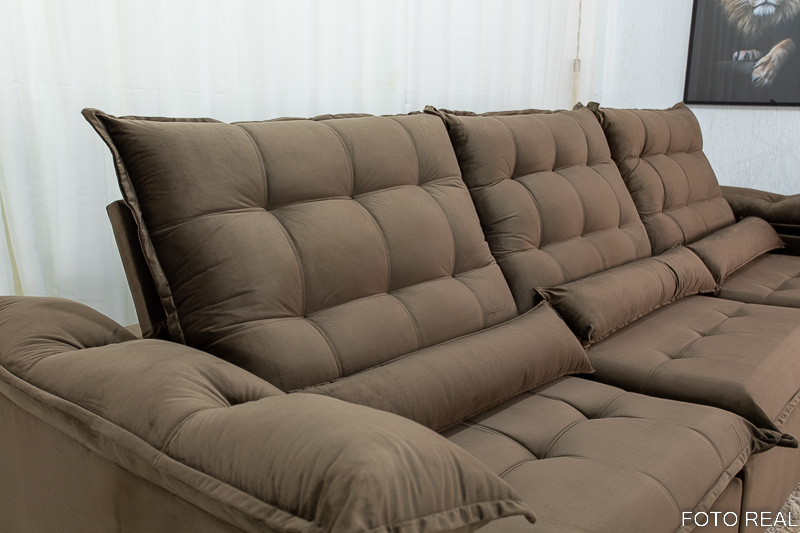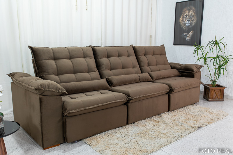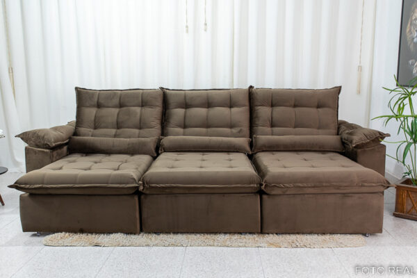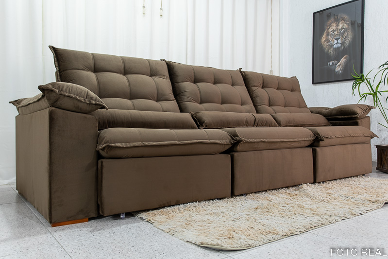 Sofá Retrátil Reclinável 3.20m Emanuelly Veludo Marrom 19 – D28 Soft