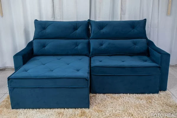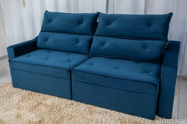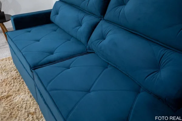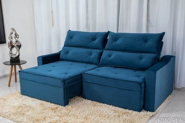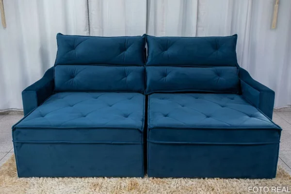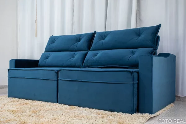Sofá Retrátil Reclinável 3 Lugares Moscou 2.30m Veludo Azul A16