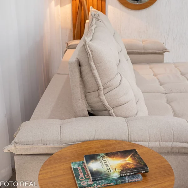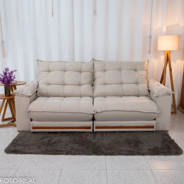 Sofá Retrátil Reclinável Barcelona 2.30m Linho Bege 459 – D33 e Molas Ensacadas Pocket