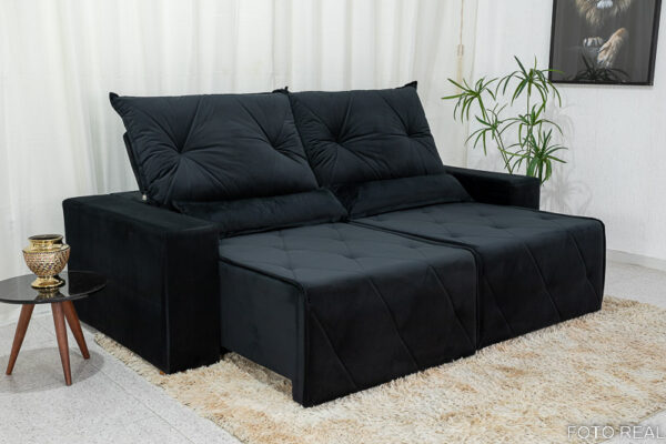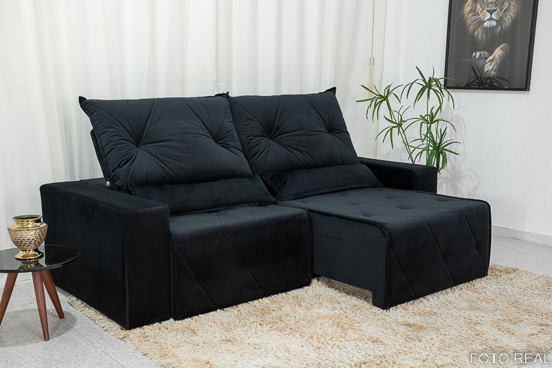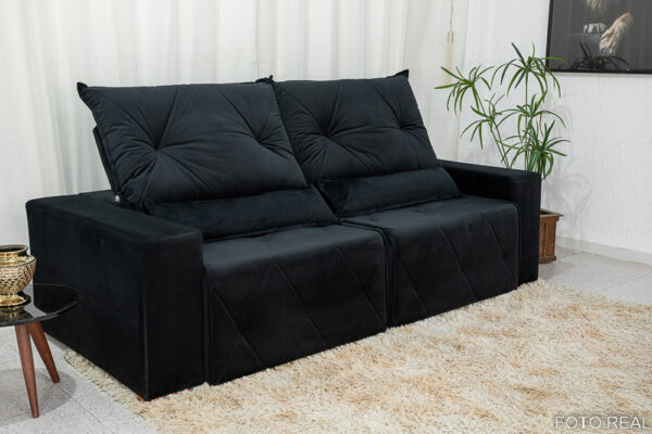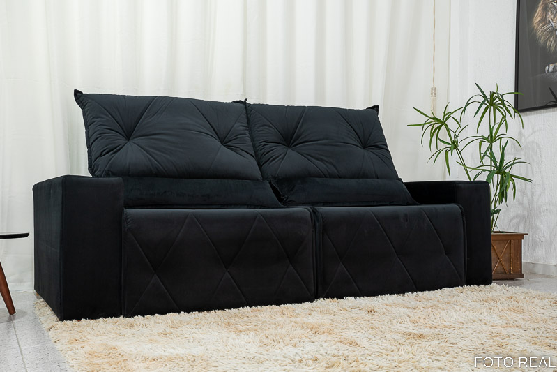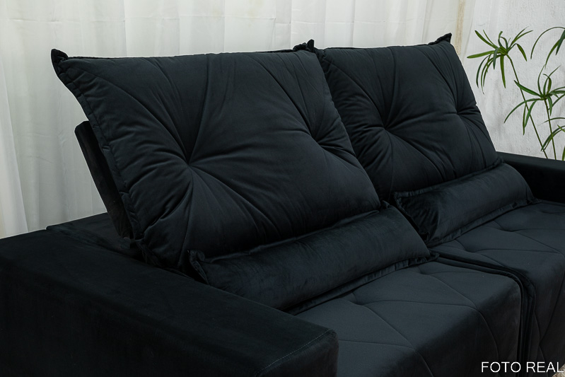 Sofá Retrátil Reclinável Belize 2.10m Veludo Preto A14