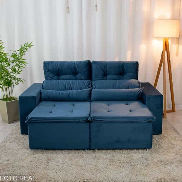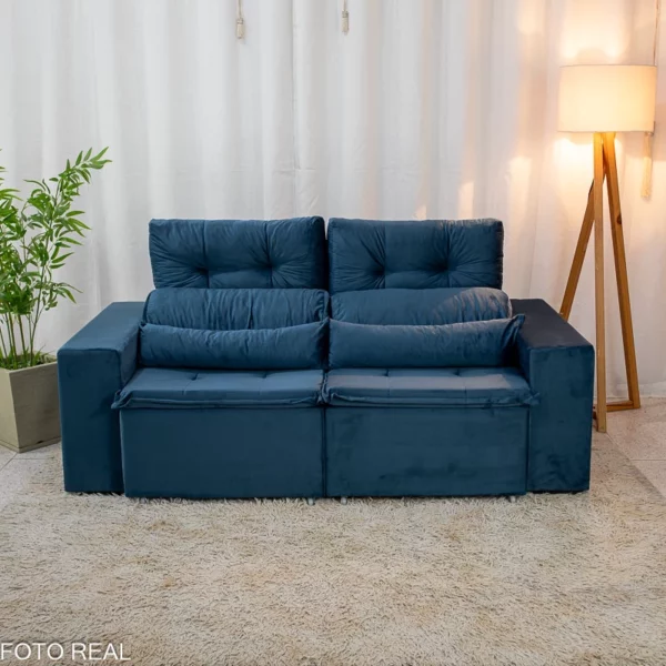 Sofá Retrátil Reclinável Bia 1.95m Veludo Azul – D28