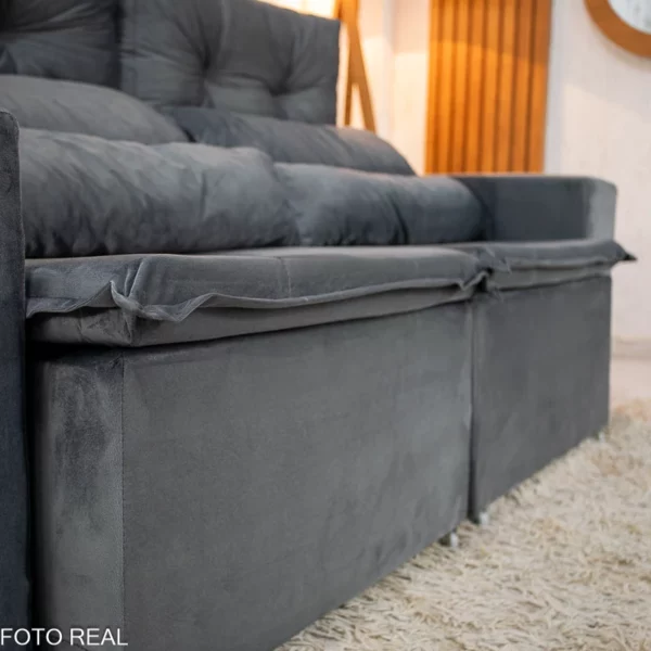 Atenção: Informamos que é normal haver uma abertura entre os módulos dos sofás retráteis. Essa abertura é necessária para evitar atrito entre os módulos durante o movimento de abrir e fechar, prevenindo o desgaste do tecido.