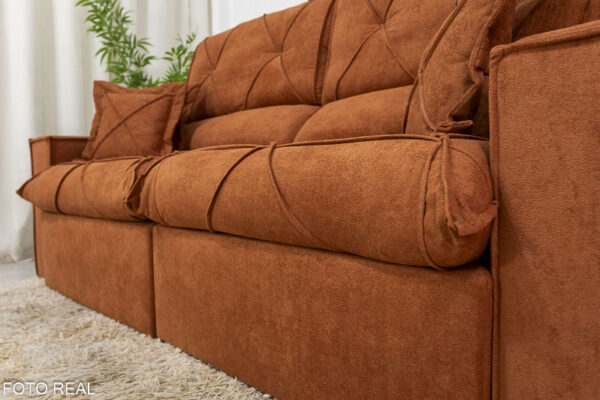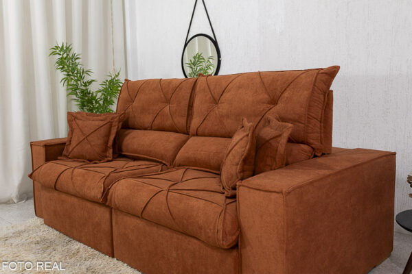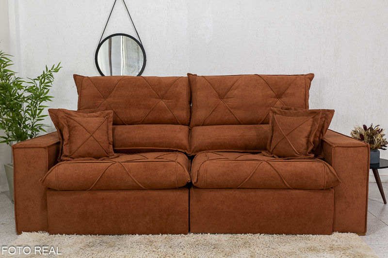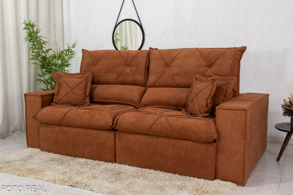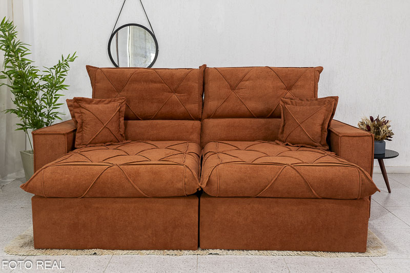 Sofá Retrátil Reclinável Dinamarca 2.50m Boucle Terracota A52 Molas Ensacadas