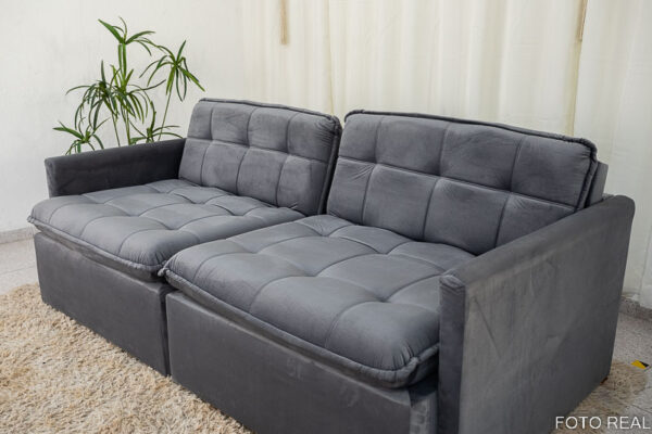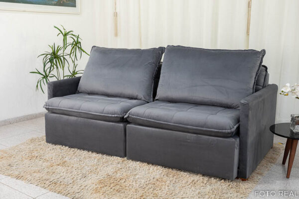 Seja o primeiro a avaliar “Sofá Retrátil Reclinável e Sofá Cama Málaga 2.15m Veludo Grafite A15”