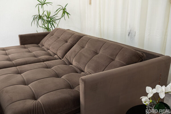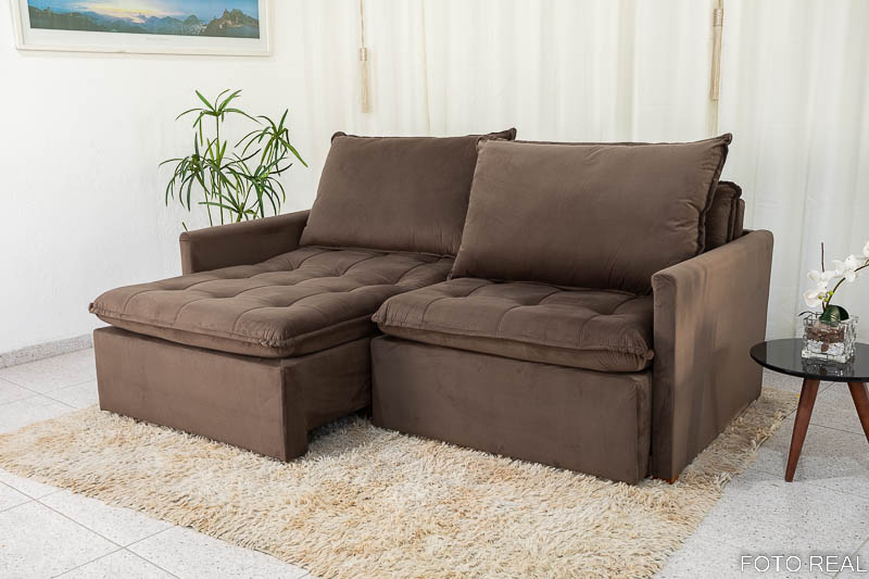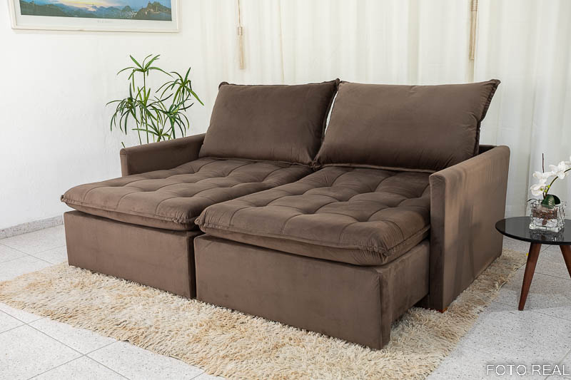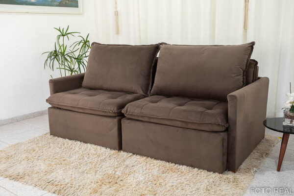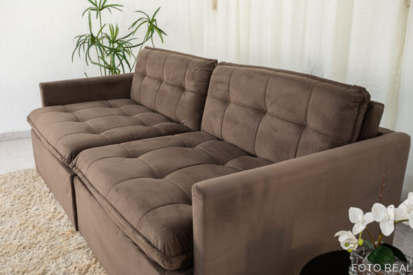 Seja o primeiro a avaliar “Sofá Retrátil Reclinável e Sofá Cama Málaga 2.15m Veludo Marrom A17”