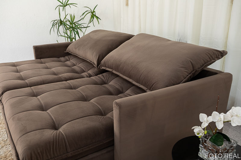 Sofá Retrátil Reclinável e Sofá Cama Málaga 2.15m Veludo Marrom A17
