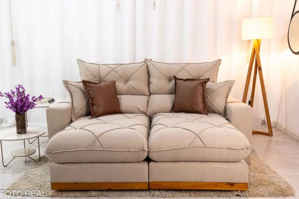 Informamos que é normal haver uma abertura entre os módulos dos sofás retráteis. Essa abertura é necessária para evitar atrito entre os módulos durante o movimento de abrir e fechar, prevenindo o desgaste do tecido.
