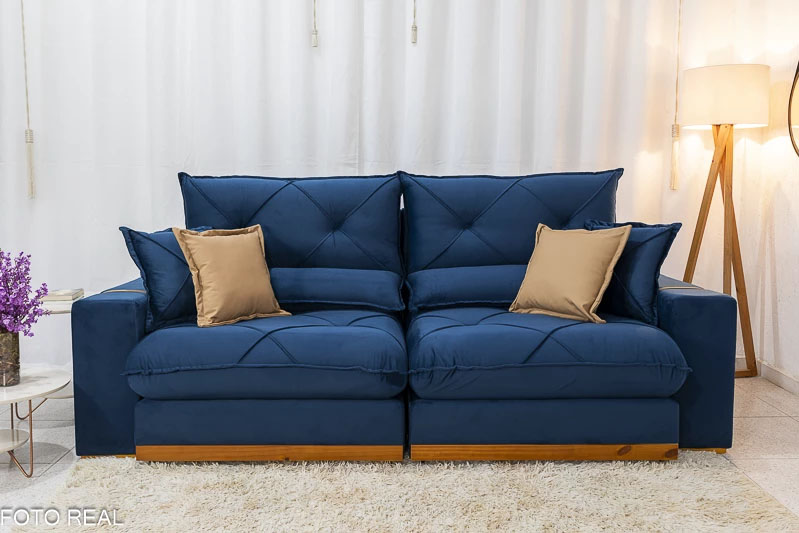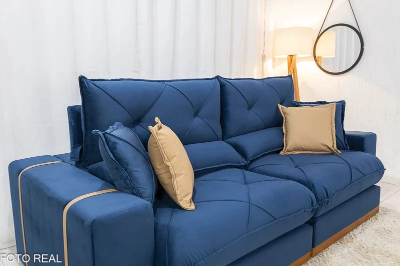 Sofá Retrátil Reclinável Gran Bello 2.00m Veludo Azul – Molas Ensacadas
