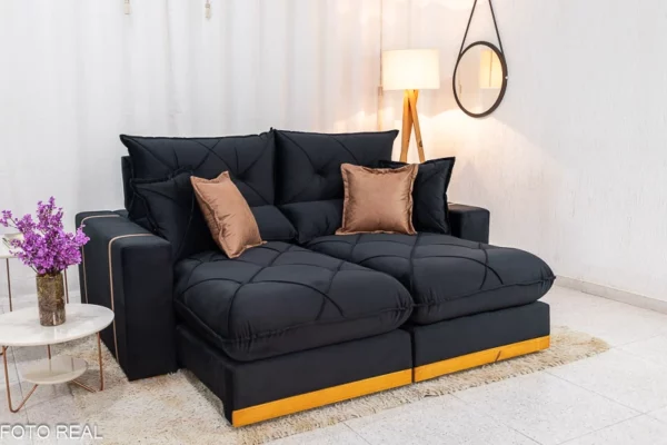 Sofá Retrátil Reclinável Gran Bello 2.00m Veludo Preto – Molas Ensacadas