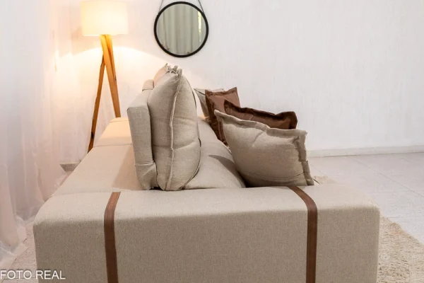 Informamos que é normal haver uma abertura entre os módulos dos sofás retráteis. Essa abertura é necessária para evitar atrito entre os módulos durante o movimento de abrir e fechar, prevenindo o desgaste do tecido.