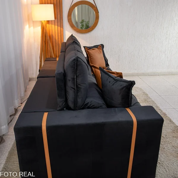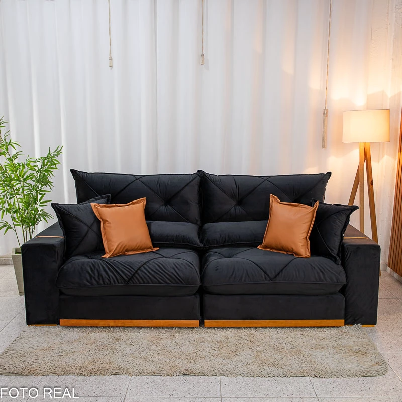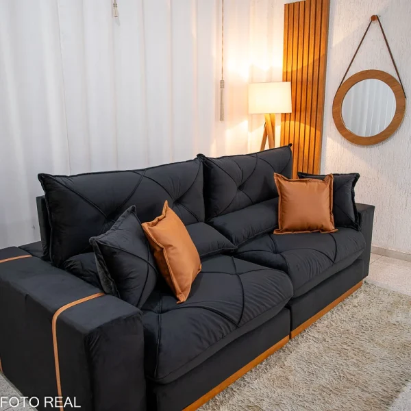 Sofá Retrátil Reclinável Gran Bello 2.30m Veludo Preto 21 – Molas Ensacadas Pocket