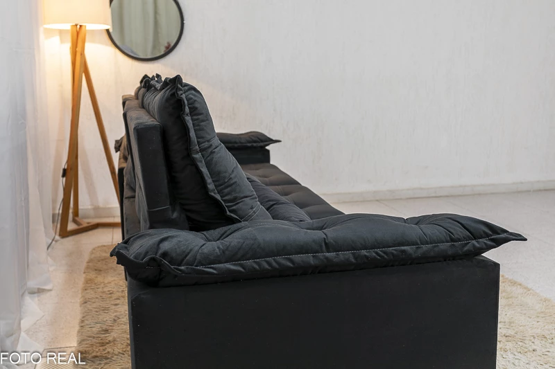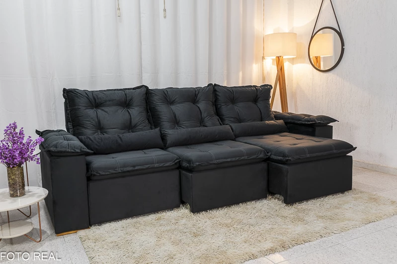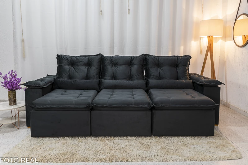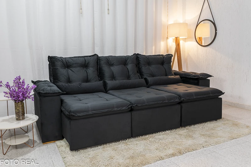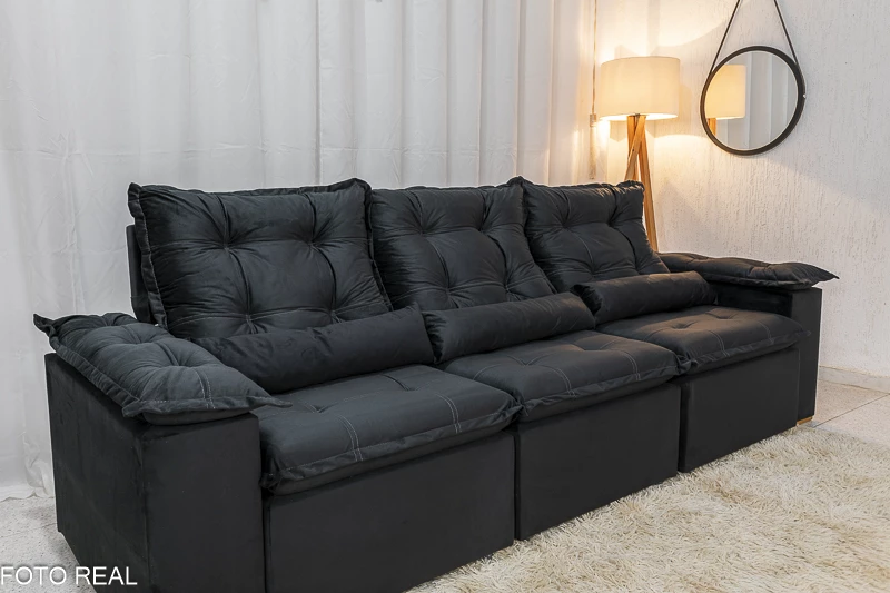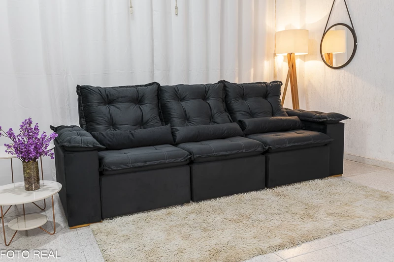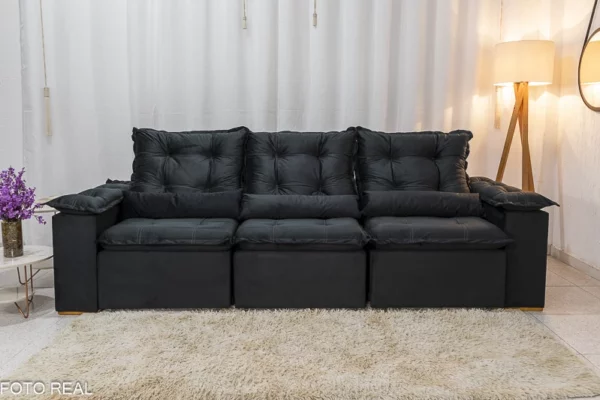 Sofá Retrátil Reclinável Grécia 2.70m Veludo Preto