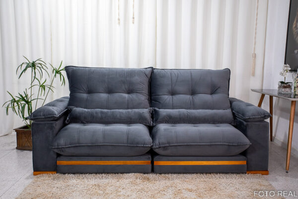 Sofá Retrátil Reclinável Ibis 2.30m Veludo Cinza 814 – D33 e Molas Ensacadas