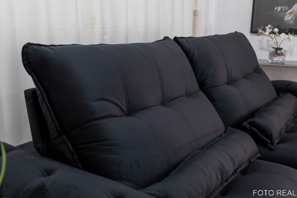 Sofá Retrátil Reclinável Ibis 2.50m Veludo Preto 820 – D33 e Molas Ensacadas
