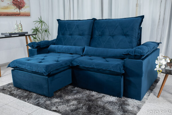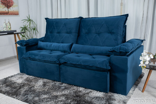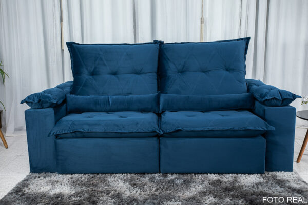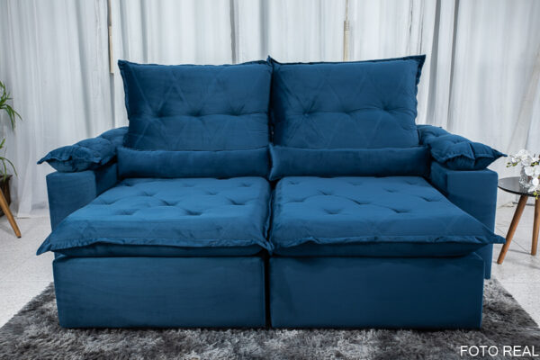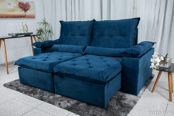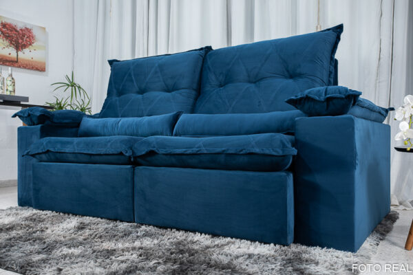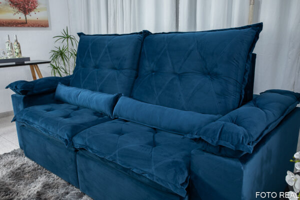 Sofá Retrátil Reclinável Las Vegas 2.30m Veludo Azul 03