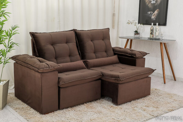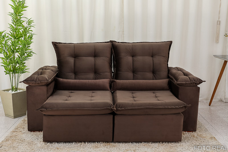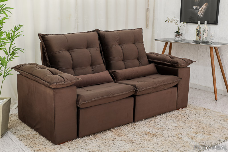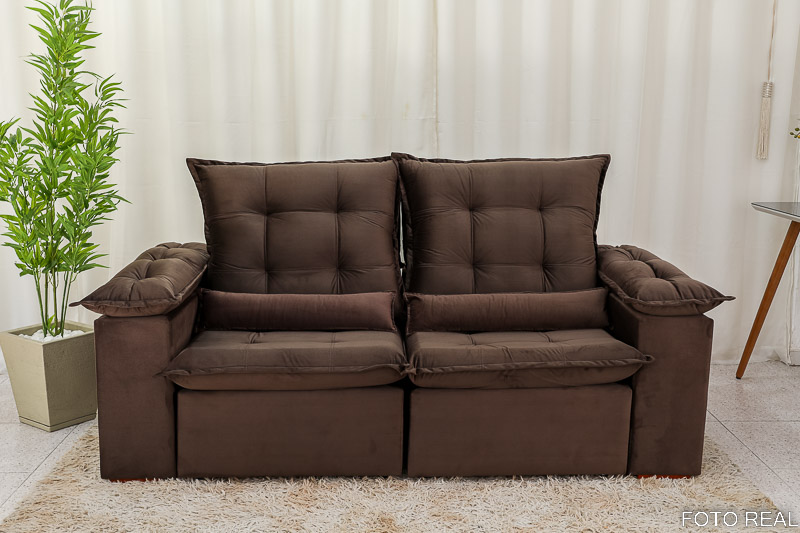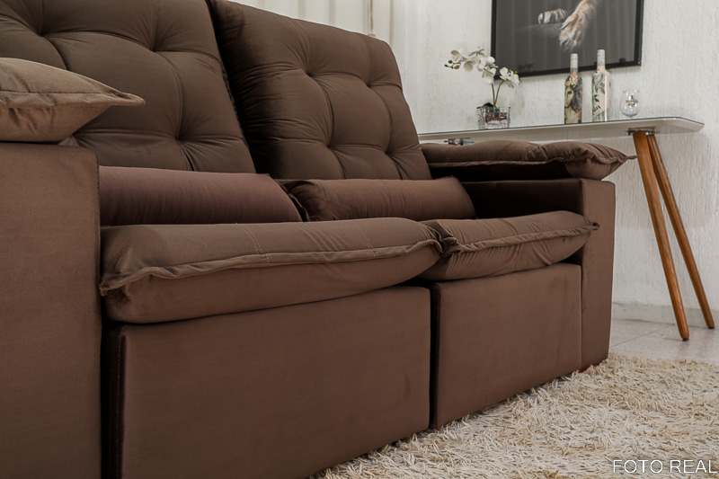 Sofá Retrátil Reclinável Madri 2.00m Veludo Marrom 19 – D28 Soft