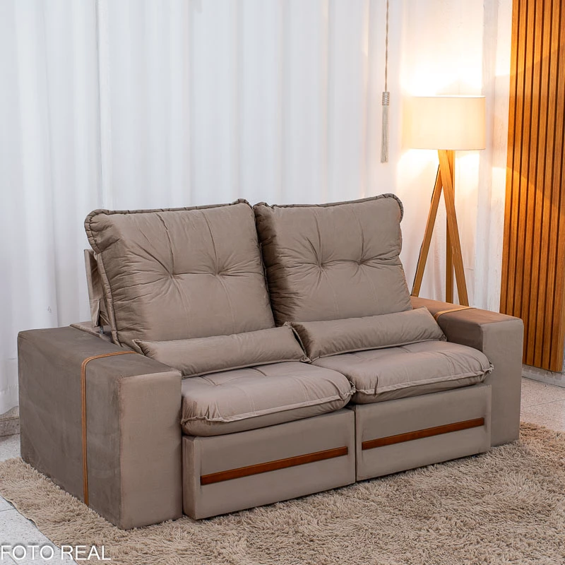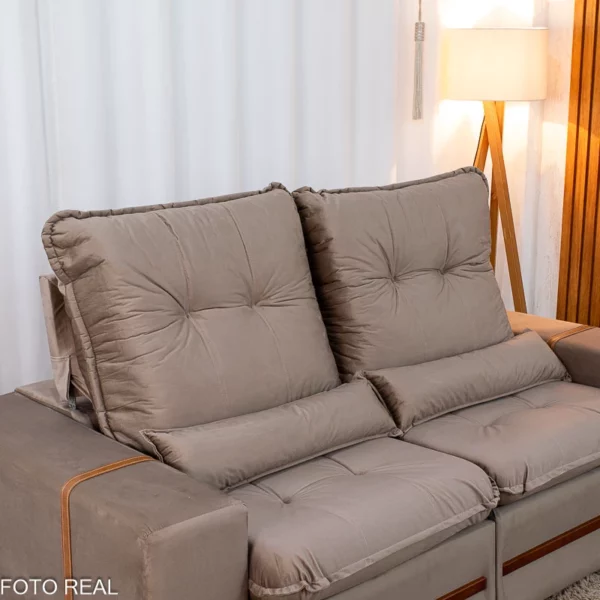 Sofá Retrátil Reclinável Montreal 1.90m Veludo Bege – D33