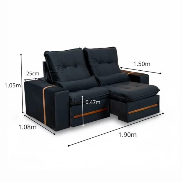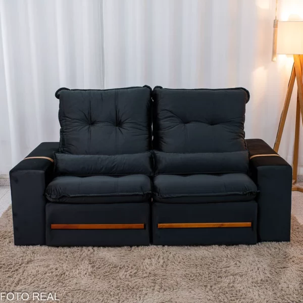 Sofá Retrátil Reclinável Montreal 1.90m Veludo Preto – D33