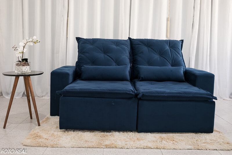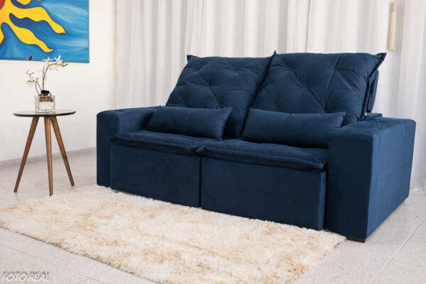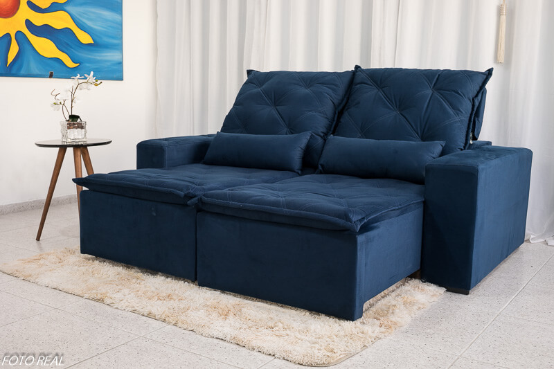 Sofá Retrátil Reclinável Rio de Janeiro Premium 2.10m Azul – Molas Bonnel