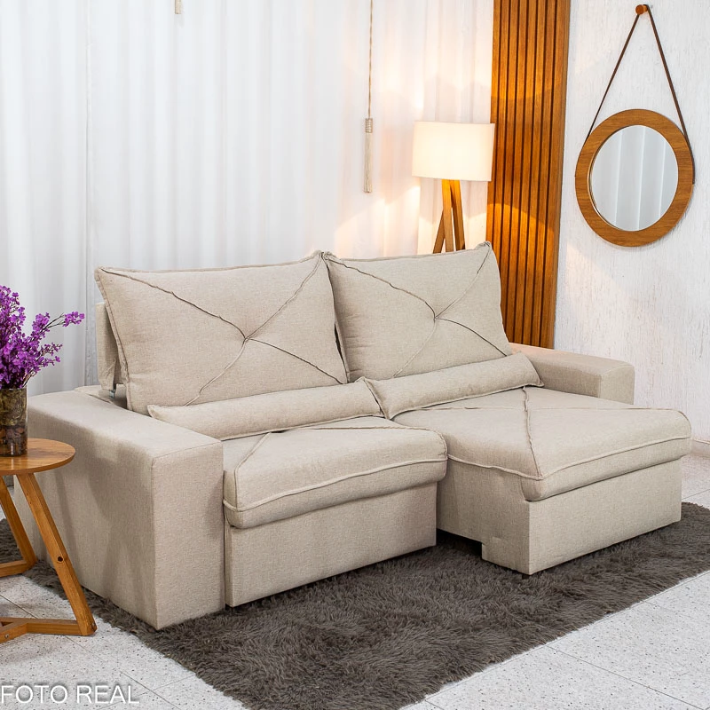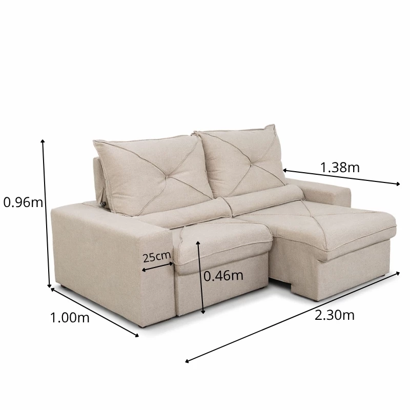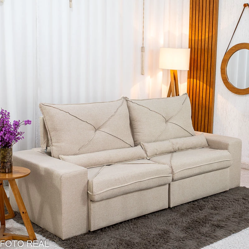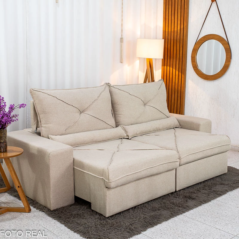 Sofá Retrátil Reclinável Tokio 2.30m Linho Bege 30